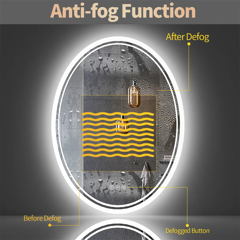 Transform your bathroom into a modern sanctuary with this illuminated oval mirror, featuring versatile lighting options and an elegant design that enhances both functionality and aesthetics.